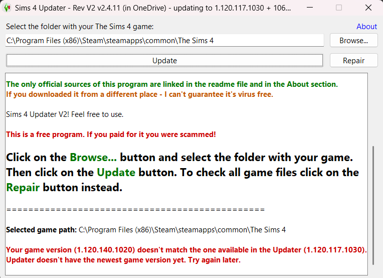 Несколько раз перескачивала этот апдейтор отсюда по новой ссылке, в прошлых обновлениях прекрасно игралось. прошу помочь
