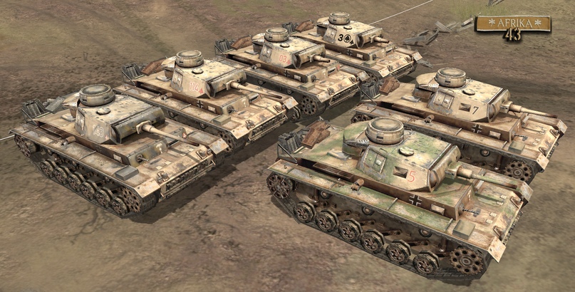 Мод также включает в себя дополнение «Африка 43», которое предлагает новый взгляд на игровой мир. В этом дополнении вы будете сражаться на африканском театре военных действий, используя технику и юниты, соответствующие времени. Здесь вы не увидите такие известные модели, как Ягдпантеры, КТ, Першинги и другие. Вместо этого вы будете использовать Матильды (двух вариаций), Pz.2, 3 и ранние Pz.4, ранний Черчилль и Шерманы М4, Крусейдеры мк.2 и 3, Тигры первых серий и многое другое.