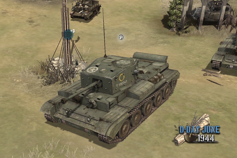 Новый скин у Кромвеля с 95-мм гаубицей. «Этот юнит очень интересный. Маркировка на башне предназначена для азимута / пеленга. Он настроен таким образом, чтобы наблюдатель стоял за танком на атакующем десантном судне, чтобы сразу узнать, в каком направлении указывает башня, чтобы он мог быстрее уложить их снаряды на береговые цели. Это использовалось только утром Дня Д, после этого они вернулись к обычной практике стрельбы.»