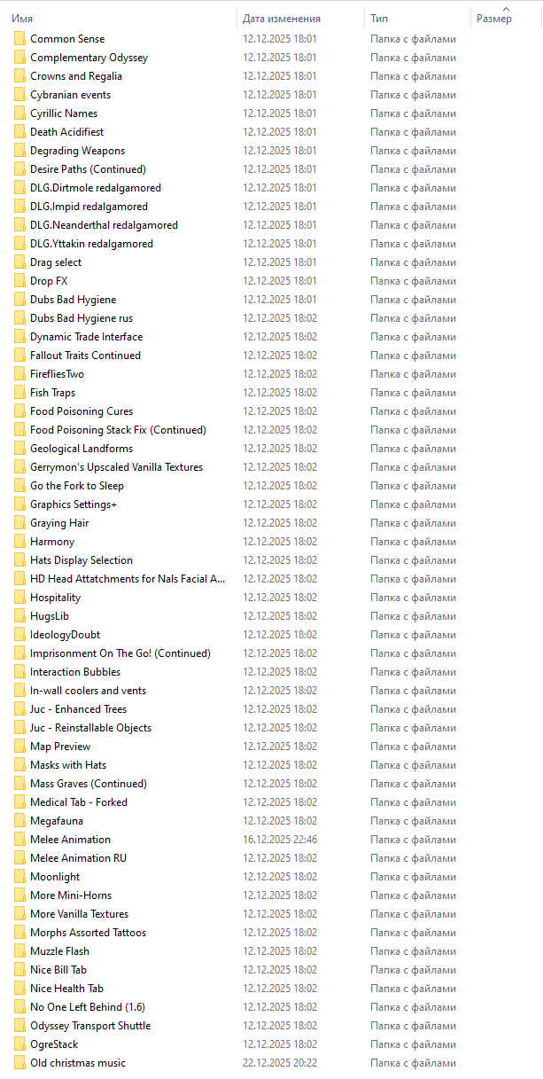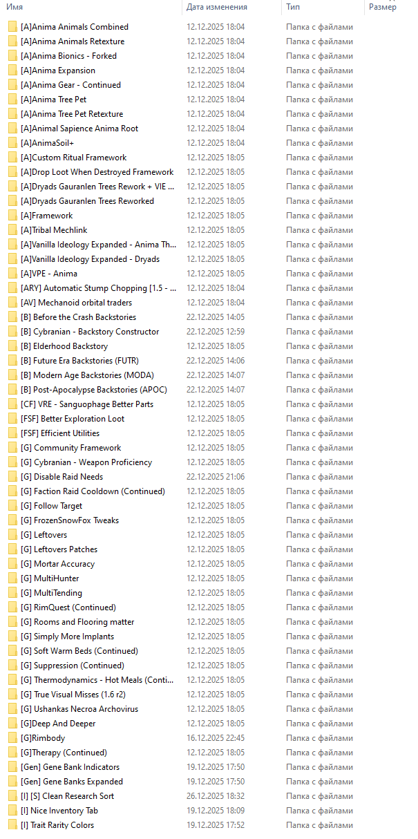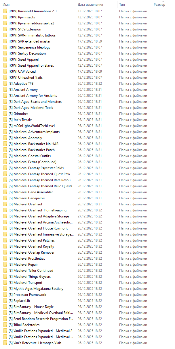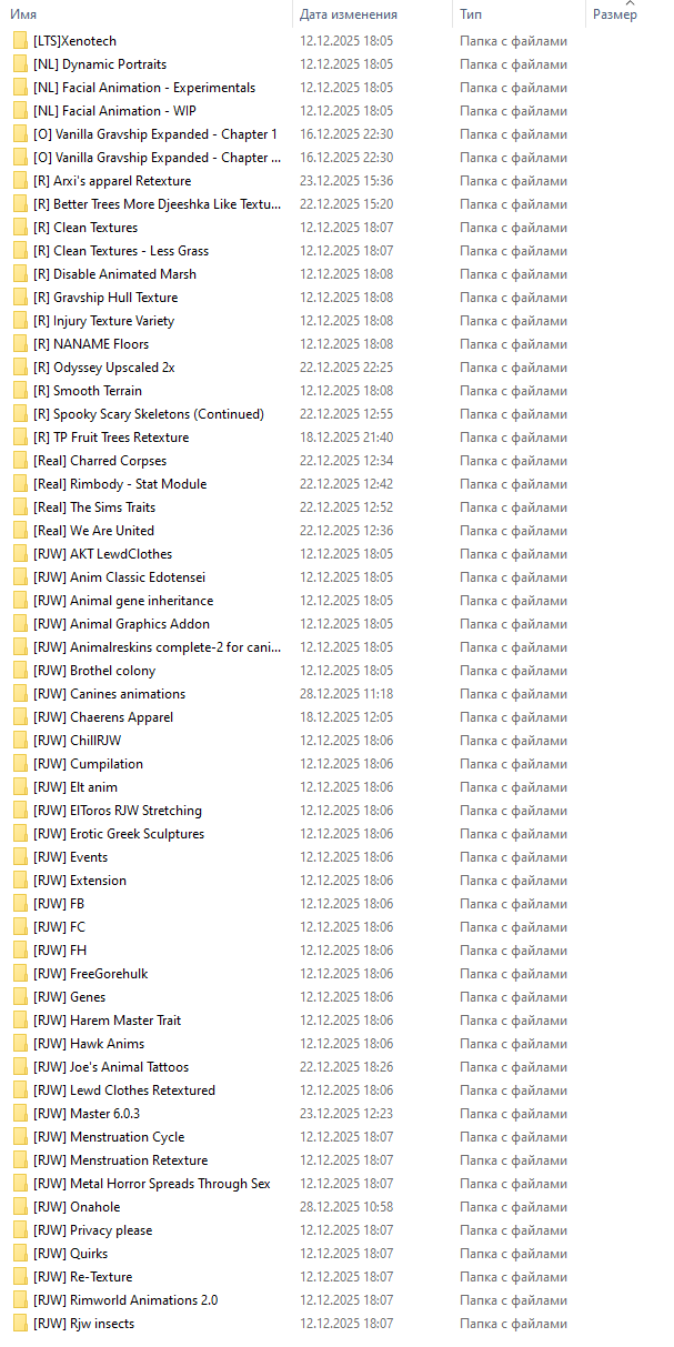 Здесь вы найдёте не просто Коллекцию Модов, а Продуманный и Сбалансированный геймплейный Опыт, объединяющий Лучшие модификации в Стабильной и Удобной сборке, Плюсом к этому добавлены RJW (18+) моды :) Немного подробностей о Модификациях: