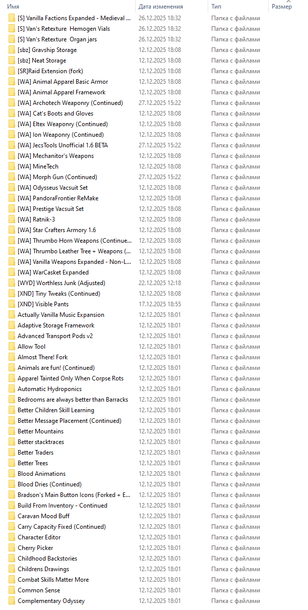 Огромное количество Модов серии Vanilla Weapons, Animals, Cooking, Plants, Furniture, Armour Expanded и многие другие модификации этой же серии.
