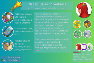 Classic Careers: The Collection — это коллекция классических карьер, полностью пересобранных с нуля для корректной и стабильной работы с актуальными версиями The Sims 4.