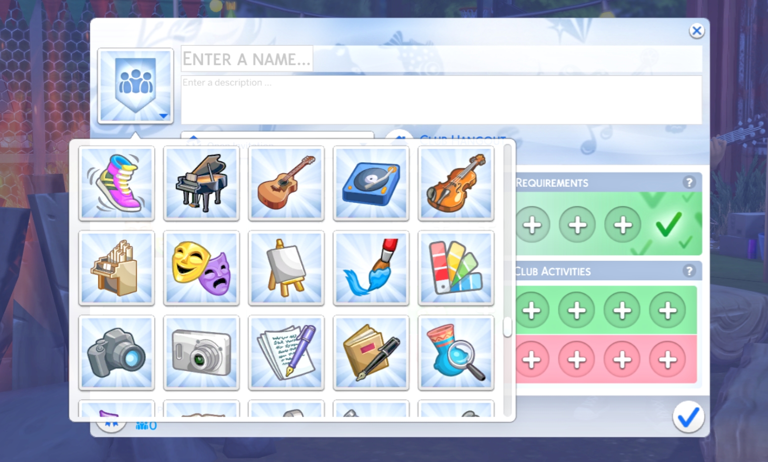 Клубы из дополнения «Веселимся вместе!» — это мощный инструмент, но им не хватает визуальной точности. Хочется, чтобы с первого взгляда было ясно, о какой компании идёт речь. Этот мод добавляет более 300 новых иконок и распределяет их по категориям, чтобы создание клубов стало проще и приятнее.