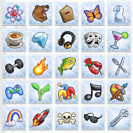 - Социальные клубы: для компаний друзей, знаменитостей, богатых и бедных симов, «вуху»-клубов, благотворительных организаций и других. - По чертам характера и образу жизни: семейные, параноики, творческие личности, вегетарианцы, активисты и другие — для поиска единомышленников. - Детские клубы: художественные кружки, клубы «Войдкриттеров», рыцарей и принцесс, приключенческие объединения, скауты и многое другое. - Подростковые клубы: популярные подростки, умники, творческие личности, бунтари и другие. - Клубы по жизненным этапам: университетские и учебные группы, карьерные объединения, клубы одиночек, разведённых, клубы для тех, кто переживает кризис среднего возраста, знакомства, клубы пожилых и другие. - Тренировки и спорт: спортзалы, йога, боулинг, клубы верховой езды и многое другое. Эти значки особенно полезны для создания игровых кружков после школы или работы. Главное — назначить клубный участок. - Еда и напитки: кофейни, клубы для ужинов вне дома, бранчи, барбекю, вечеринки с шампанским и другие. - Активности: киноклубы, покер, шопинг, путешествия, караоке и многое другое. - Навыки и хобби: гитара, драмкружок, гончарное дело, вязание, флористика, пение и другие. - Активный отдых: кемпинг, клубы коллекционеров, пляж, парки, сезонные объединения и многое другое. - Оккультные клубы: вампиры, заклинатели, оборотни и другие. - Животные: например, «собачьи клубы» для встреч в разных парках.