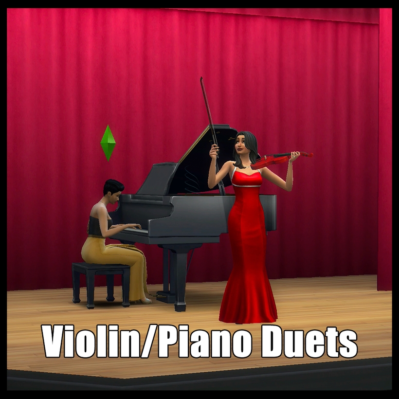 Мод «Дуэты для фортепиано и скрипки» добавляет новую возможность — симы могут исполнять музыкальные произведения вместе. Один персонаж играет на скрипке, а другой сопровождает его на фортепиано, создавая полноценный дуэт.