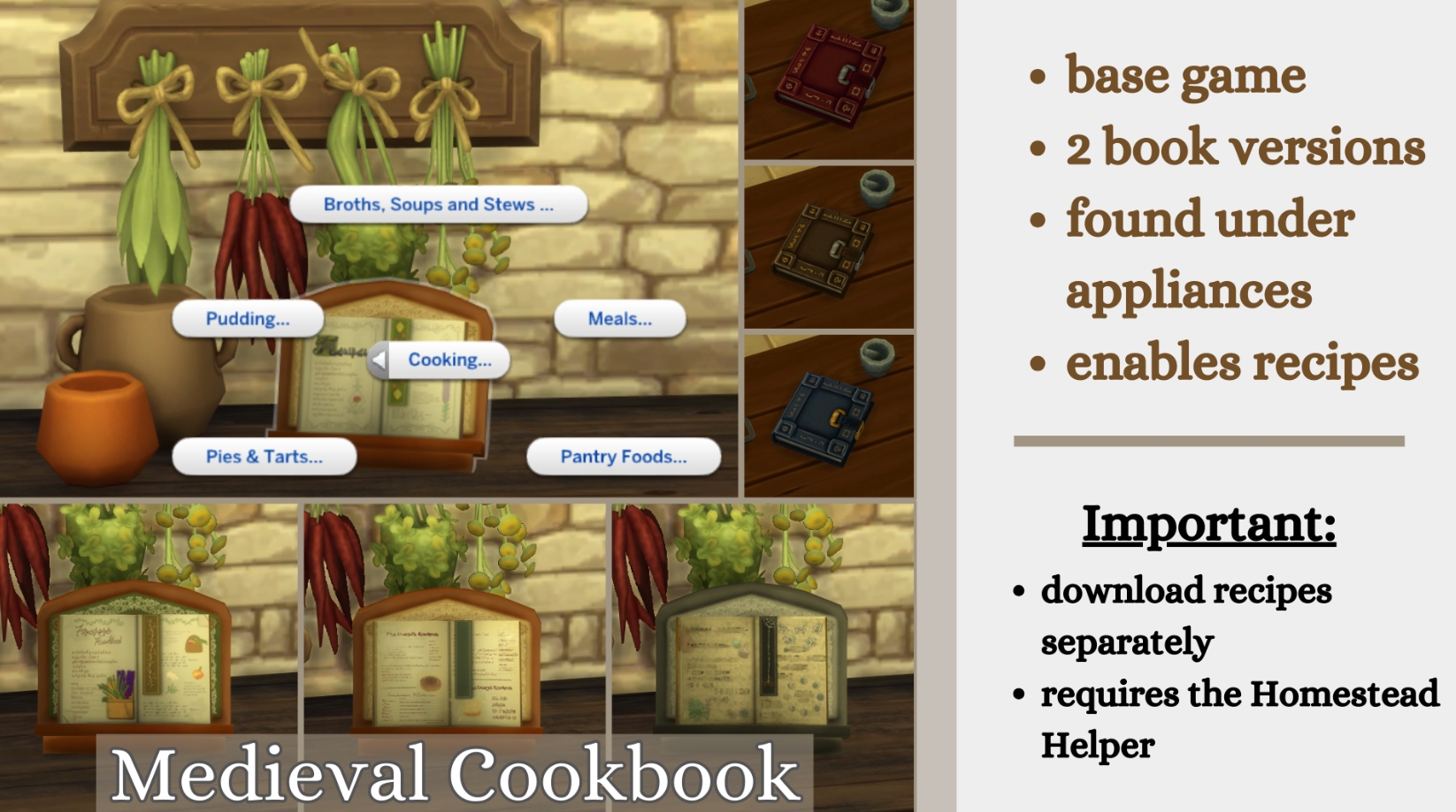 Средневековая кулинарная книга — это мод, который не зависит от других установленных модов. Это книга, которую можно разместить в инвентаре вашей партии симов. Игрок может взаимодействовать с ней, чтобы открыть меню с едой и выбрать блюда для своих персонажей.