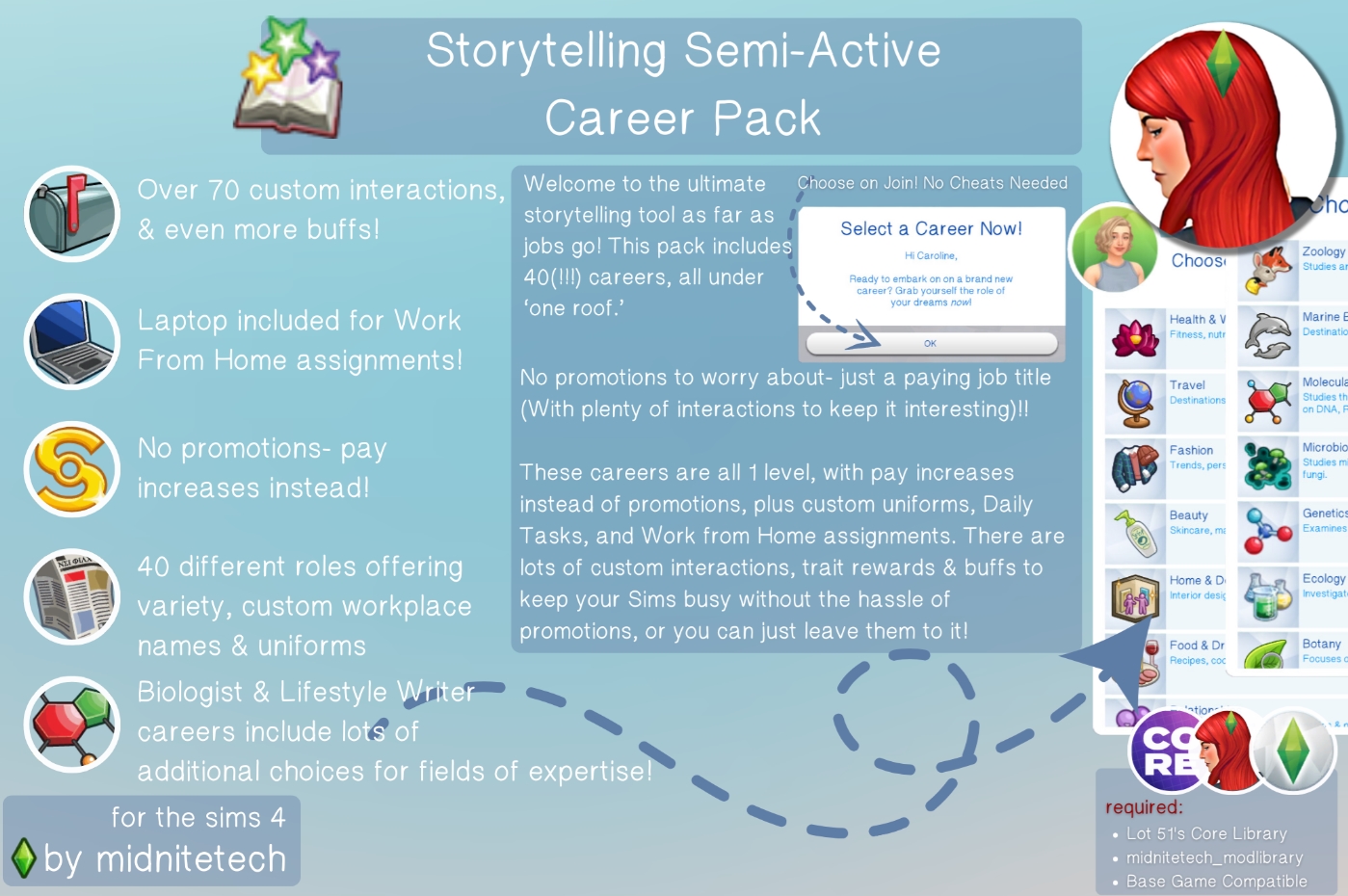 Хотите добавить разнообразия в игровой процесс, но не хотите загружать игру множеством модов на карьеры? Желаете, чтобы выбор профессии для вашего персонажа или NPC был значимым, но карьерный рост не входил в их планы? Тогда этот набор для вас!