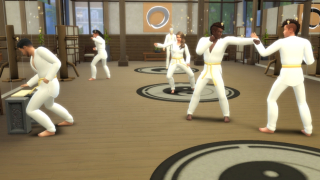 В додзё NPC-ученики носят формальную ги, активные симы могут переодеться на месте.