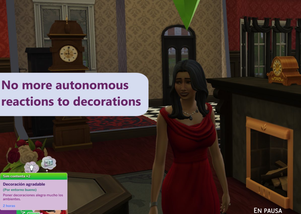 С ним симы больше не будут перемещаться в другие комнаты ради реакции на украшение. Никаких лишних прогулок!