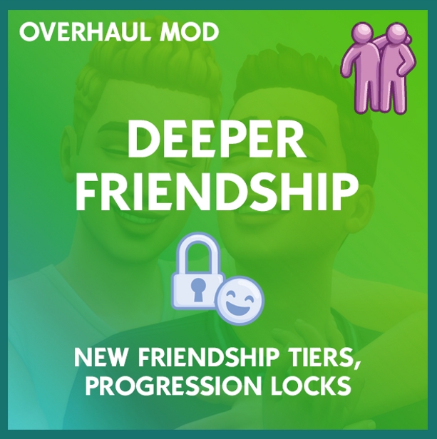 — Мод замедляет развитие дружеских отношений, делая их плавными и реалистичными. — Для изменения уровня дружбы после достижения "Дружелюбия", "Друга", "Хорошего друга" или "Близкого друга" нужно подождать несколько игровых часов. — Время ожидания сокращается по мере улучшения навыка обаяния или общения у детей. — Время ожидания влияет только на прирост уровня дружбы; ухудшение отношений происходит естественным образом. — На панели отношений появится иконка замка с надписью "Уровень дружбы недавно достигнут". Когда иконка исчезнет, дружба сможет развиваться дальше.