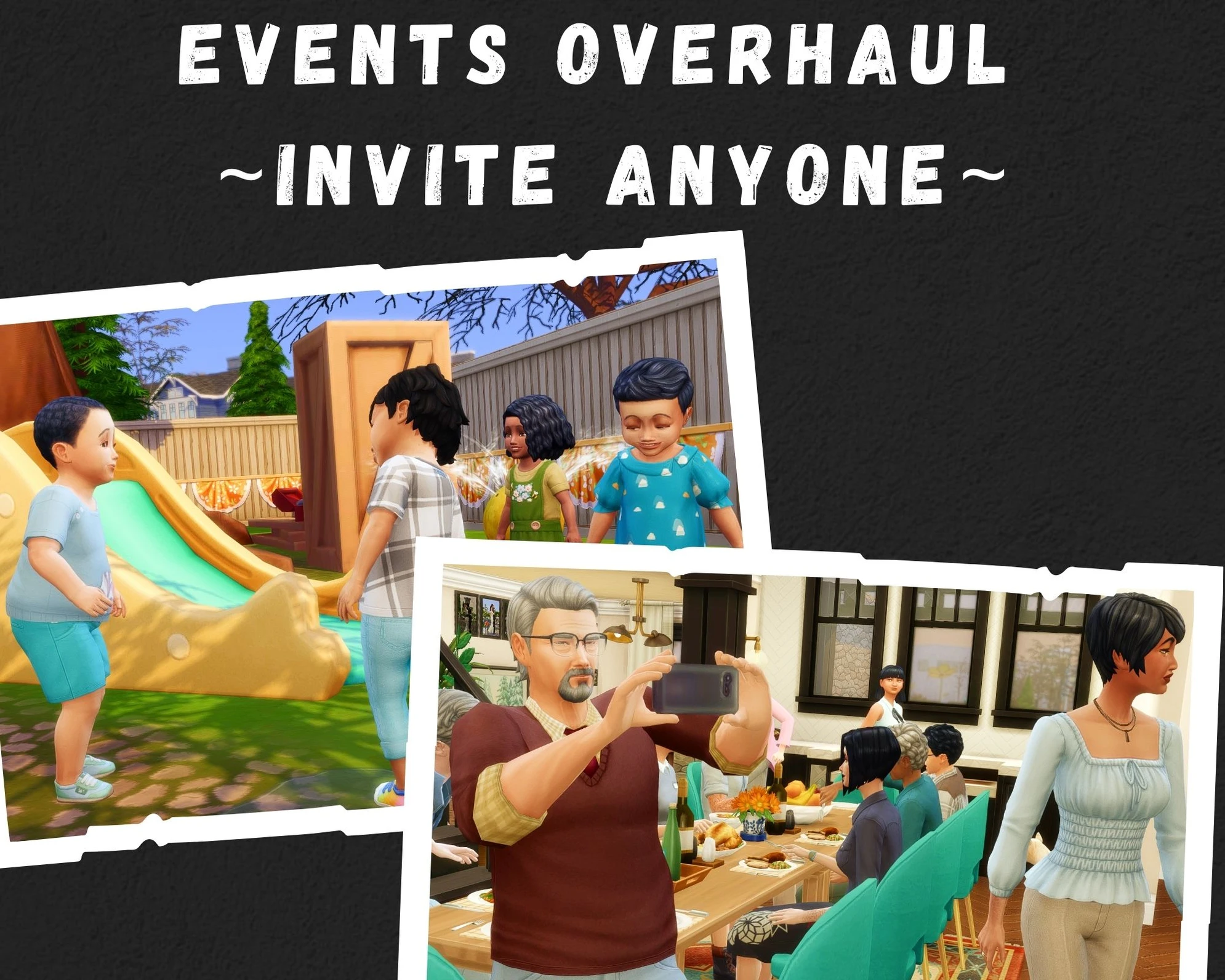 Events Overhaul — Invite Anyone — небольшой мод для The Sims 4, который упрощает фильтры приглашений на многие внутриигровые мероприятия. Теперь ваш сим может пригласить почти любого сима из сохранения на различные события.