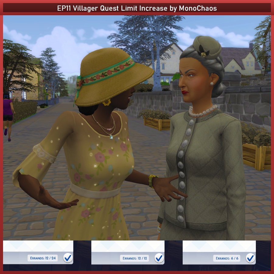 В оригинальной системе дополнения «Загородная жизнь» сим может иметь только 3 активных поручения жителей деревни одновременно. Это ограничивает возможность брать новые задания, пока не будут выполнены или отменены текущие.
