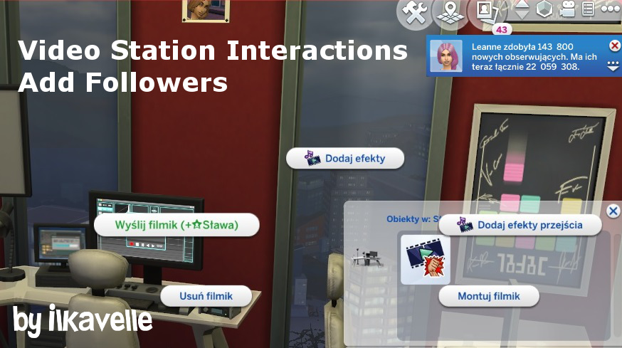 Video Station Interactions Add Followers — это упрощённый мод для The Sims 4. Он добавляет подписчикам за определённые действия на видеосистеме, делая социальные сети вашего сима более динамичными.