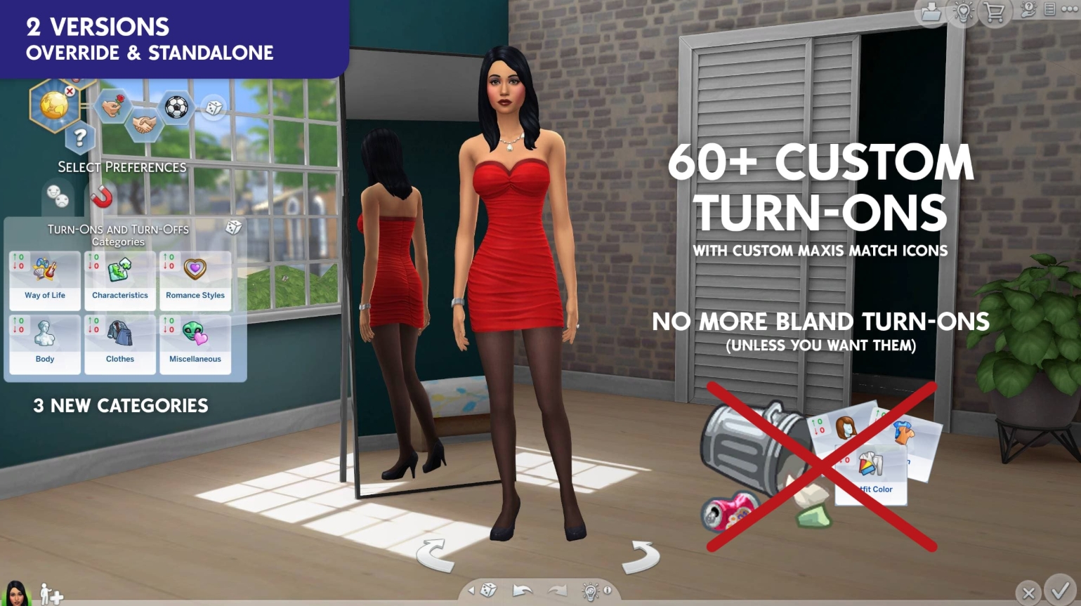Мод полностью переведён на все языки и включает пользовательские иконки Maxis-Match, которые я тщательно создал.