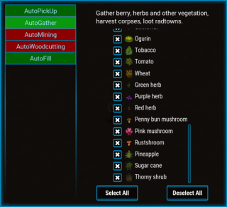 Мод добавляет некоторую автоматизацию к простым задачам, таким как сбор ресурсов или мародерство. По умолчанию все функции мода отключены.