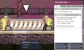 Добавляет вариант термодатчика , построенный из 100 очищенных металлов , который занимает сплошную плитку. Поэтому он может передавать тепло соседним плиткам и элементам, даже в вакууме , без необходимости в небольшом кармане для жидкости или газа.