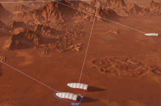 Это ваш дружелюбный марсианский шаттл. Он просто наблюдает за вами. В будущем мы планируем добавить ещё одну функцию — возможность преследовать дроны.