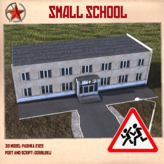 Небольшое школьное здание с меньшими требованиями к персоналу и вместимостью по сравнению с первоначальным зданием (5/8).