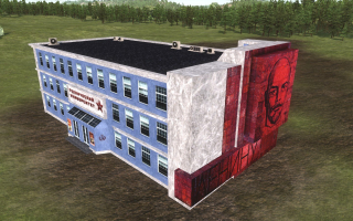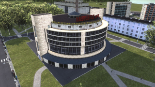 На основе реального здания Красноярской ГЭС, которое я перепрофилировал (с небольшой художественной лицензией) в Технический университет вместимостью до 100 студентов.