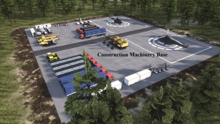 База строительной техники. Во первых отличается от стандартной строительной конторы количеством техники. Её 32 единицы, в том числе два вертолёта. Чтобы построить надо много бетона, очень много бетона!